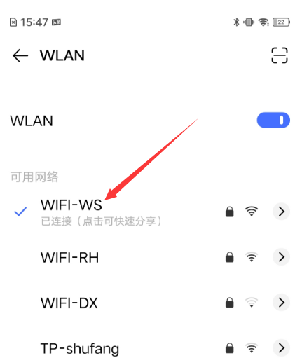 1. 連接任意WiFi,從設置中進(jìn)入WLAN,點(diǎn)擊當前已連接的WiFi: