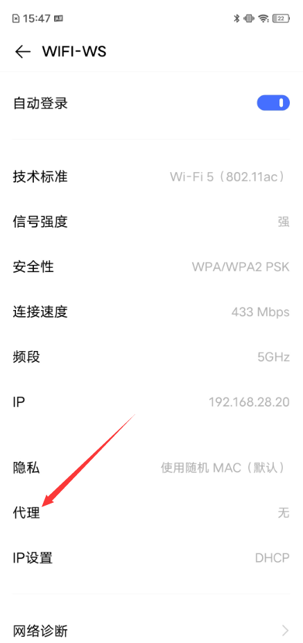 2. 在WiFi配置頁(yè)面的最下方,找到代理: