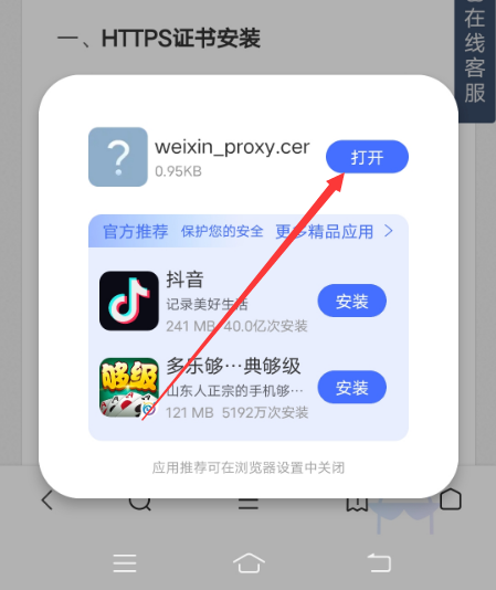 1. 點(diǎn)擊下面的下載地址,把HTTPS證書(shū)下載到手機上。下載地址: